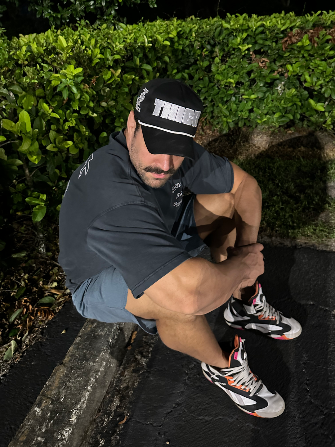Eric Bugenhagen aka Dr Density has spent months in the laboratory perfecting this article of fashionable headwear. This is due to the nature that the hat is one of the most symbolic pieces of horse cockery. If worn forwards, it allows one to lock in and achieve laser focus by blocking out peripheral vision thus allowing one to eliminate visuals of any surrounding pencilnecks therefore achieving bigger pumps and stength PRs. If worn backwards, it directly promulgates that you are getting serious and need 100% optical stimulation to horse the heaviest of loads. Bugenhagen hand selected the comfiest of fits and fabrics for this hat, which allows one to get down and dirty yet still remain cozy on the cranial location of the skeleton.